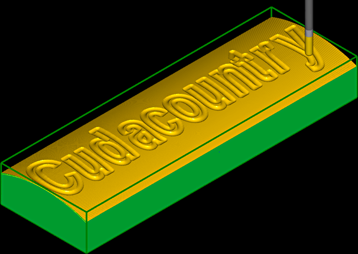 19. Cudacountry Radial. Project text onto a curved surface in 5.7 by 1.8 stock. Use Along to draw arc for curved surface. | |