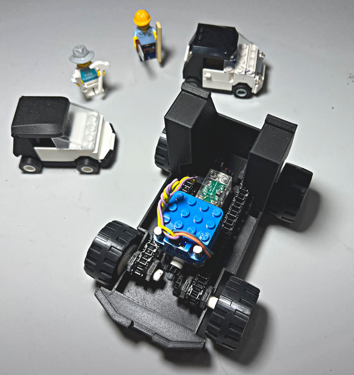 The ESCar uses Circuit Cubes Bluetooth Motor with Lego Technic Chain.